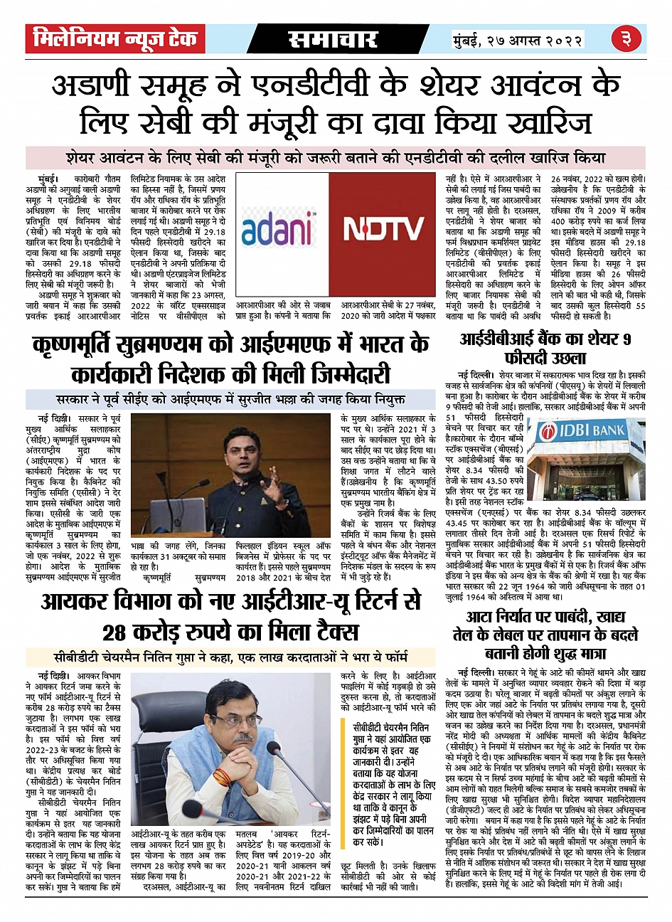 27 August 2022 Page: 3 August 27, 2022 << First << 3 >> Last >> Page 1Page 2Page 3Page 4Page 5Page 6Page 7Page 8 × 27 August 2022 PAGE 1PAGE 2PAGE 3PAGE 4PAGE 5PAGE 6PAGE 7PAGE 8 << First << 3 >> Last >> PAGE 1PAGE 2PAGE 3PAGE 4PAGE 5 PAGE 6PAGE 7PAGE 8